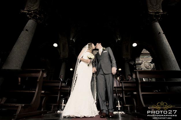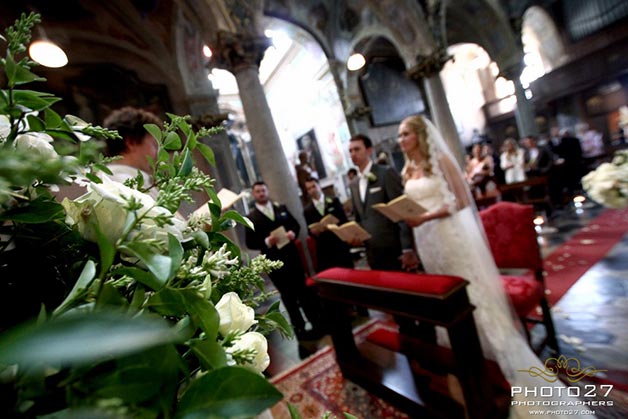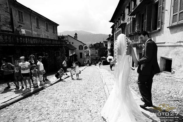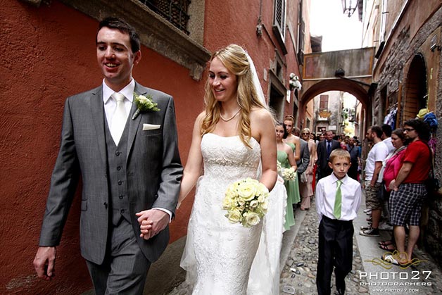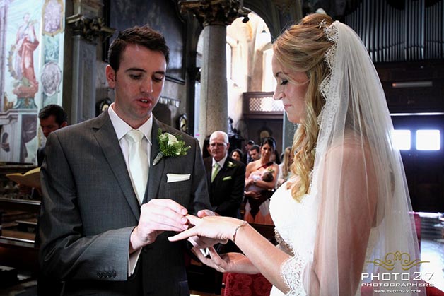 Nicola e Brendan hanno deciso per una cerimonia cattolica nella chiesa della Assunta nel borgo storico di Orta.