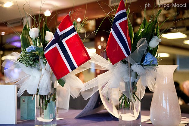 Tra bandierine norvegesi e centrotavola con ortensie azzurre e rose, gli sposi e i loro ospiti sono stati deliziati dai piatti raffinati cucinati dagli abili chef del ristorante San Rocco: una garanzia se siete alla ricerca di una cucina che coniuga i sapori del territorio insieme alla creatività ed all’innovazione.