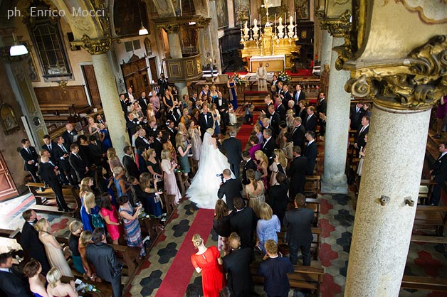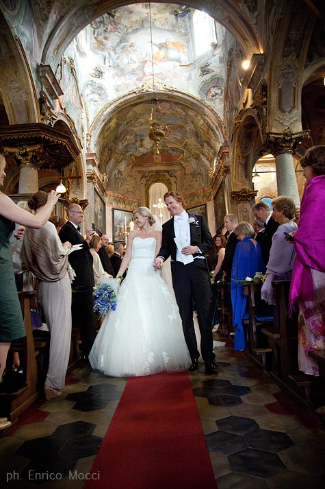 Poco prima dell’orario previsto per la cerimonia, Kristine è uscita dalla sua camera all’Hotel San Rocco: con il suo favoloso abito da sposa, e accompagnata dalle sue damigelle, ha raggiunto a piedi la chiesa, attraversando i suggestivi vicoli di Orta.